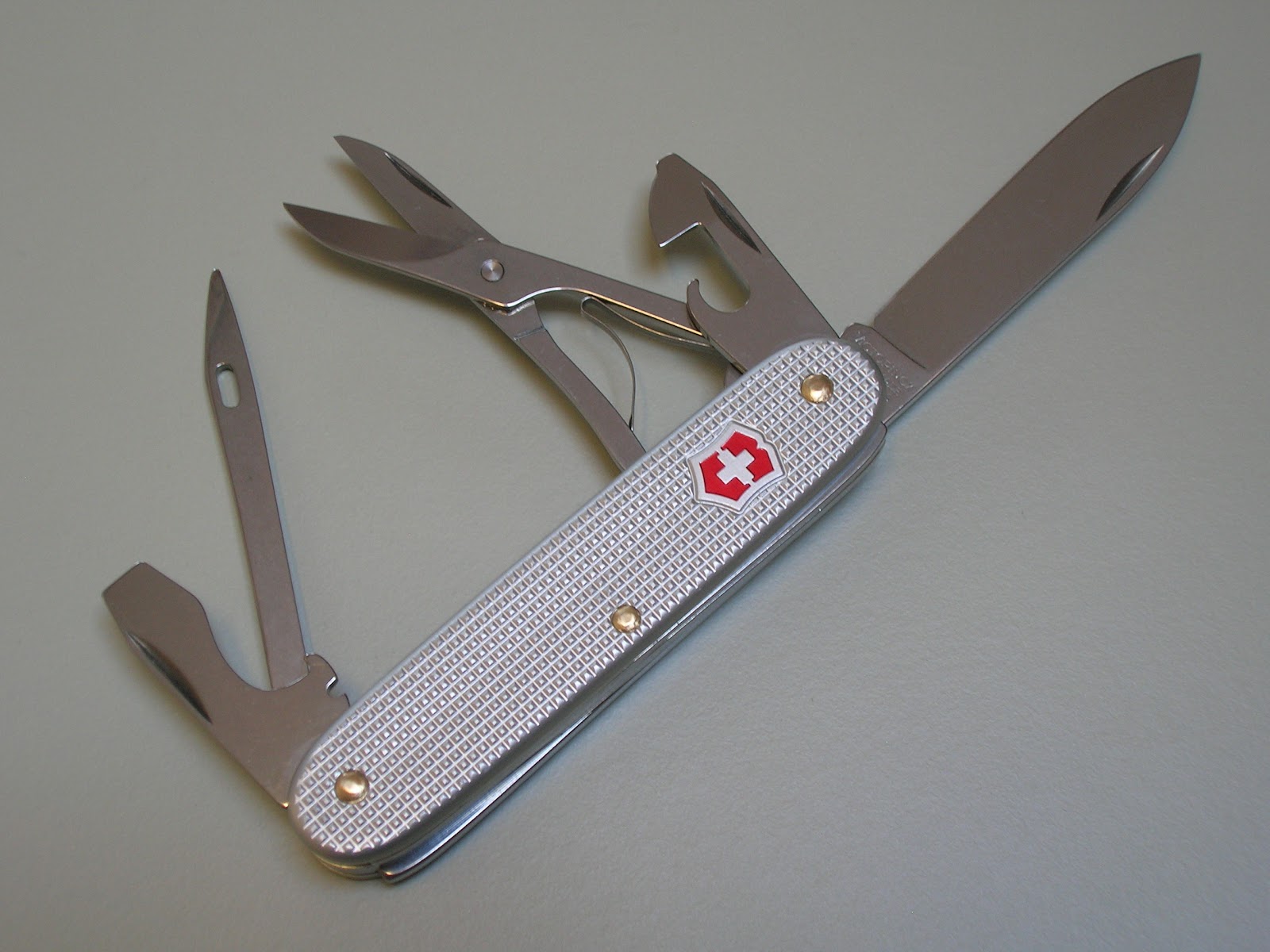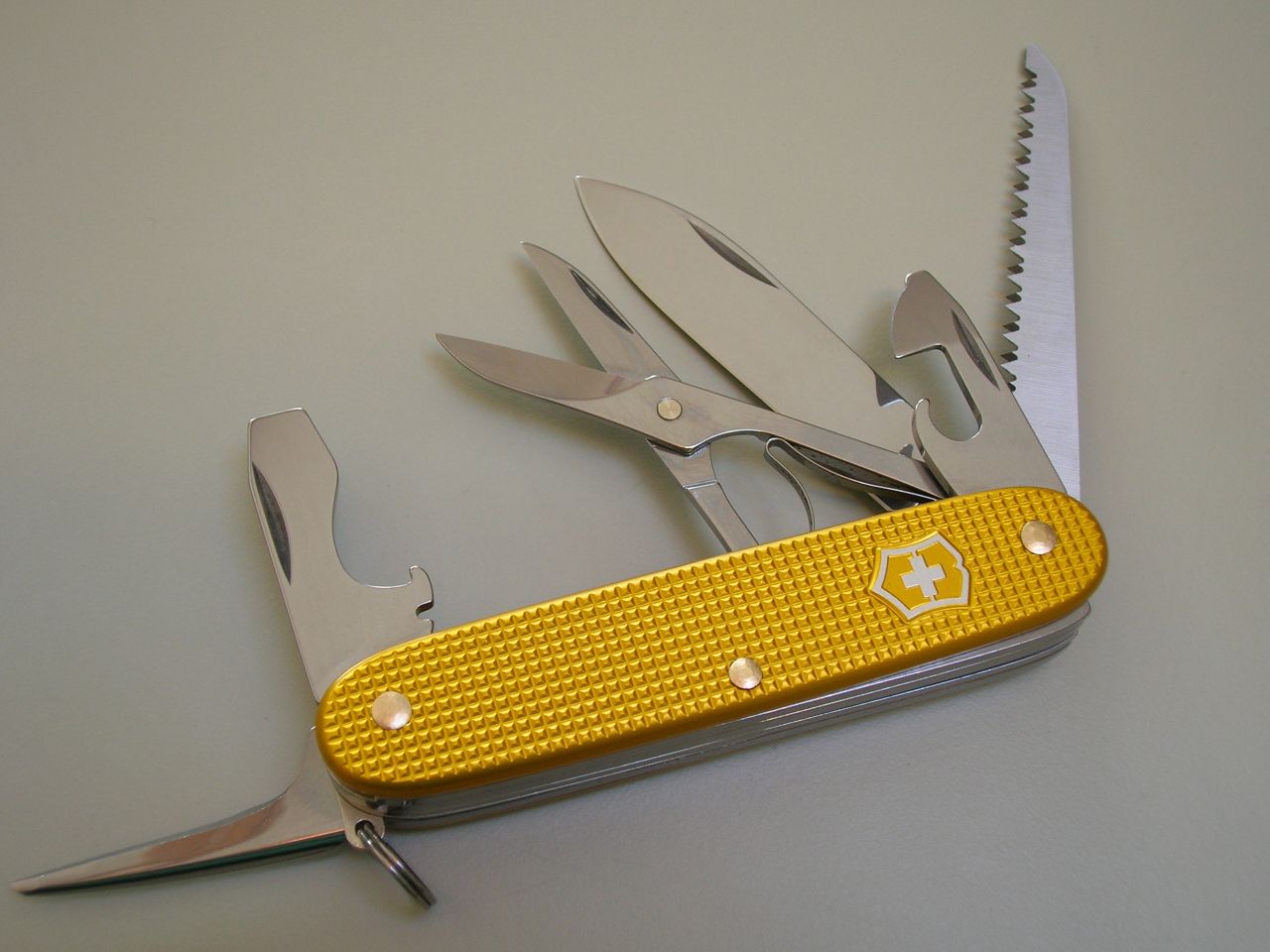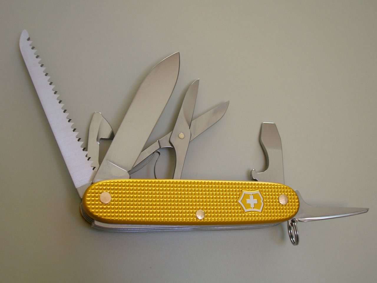Das Alox Cadett ist ein 84mm langes Messer mit Klinge, Nagelfeile, Flaschenöffner und Büchsenöffner. Um es noch nützlicher zu machen, habe ich eine Holzsäge und einen Feuerstahl hinzugefügt. Damit kann ich nun den Wald unsicher machen ....